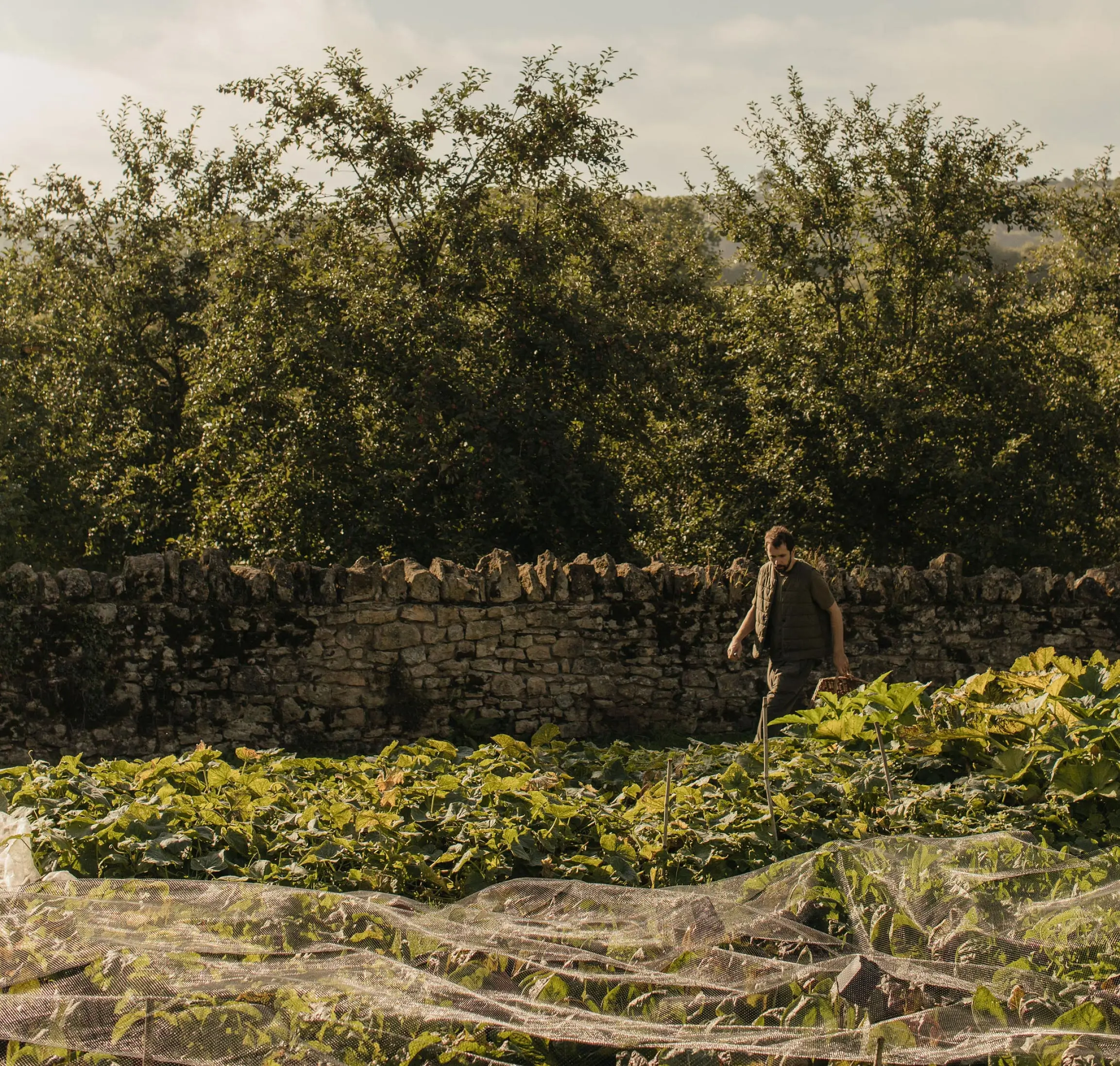 Our menu evolves daily and is an expression of the Somerset landscape, using produce grown by the team on our nearby farm.